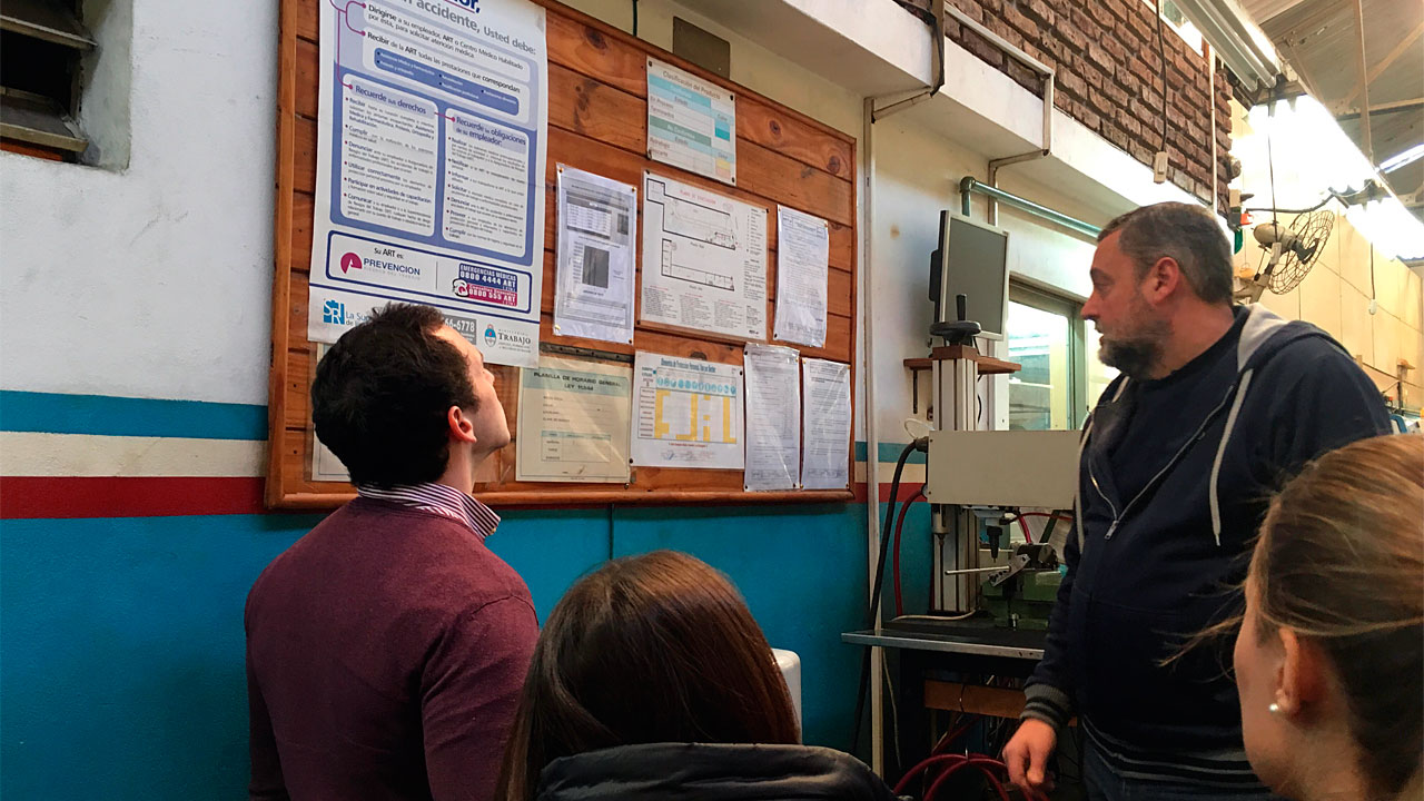 El objetivo perseguido con esta experiencia es que los alumnos visualicen la planta de la empresa, reconozcan sus procesos, identifiquen los peligros y riesgos que se pueden presentar en el ámbito laboral y observen en la práctica cómo se gestiona la seguridad y la salud en el trabajo, como así también la revisión de la documentación de gestión de la seguridad.