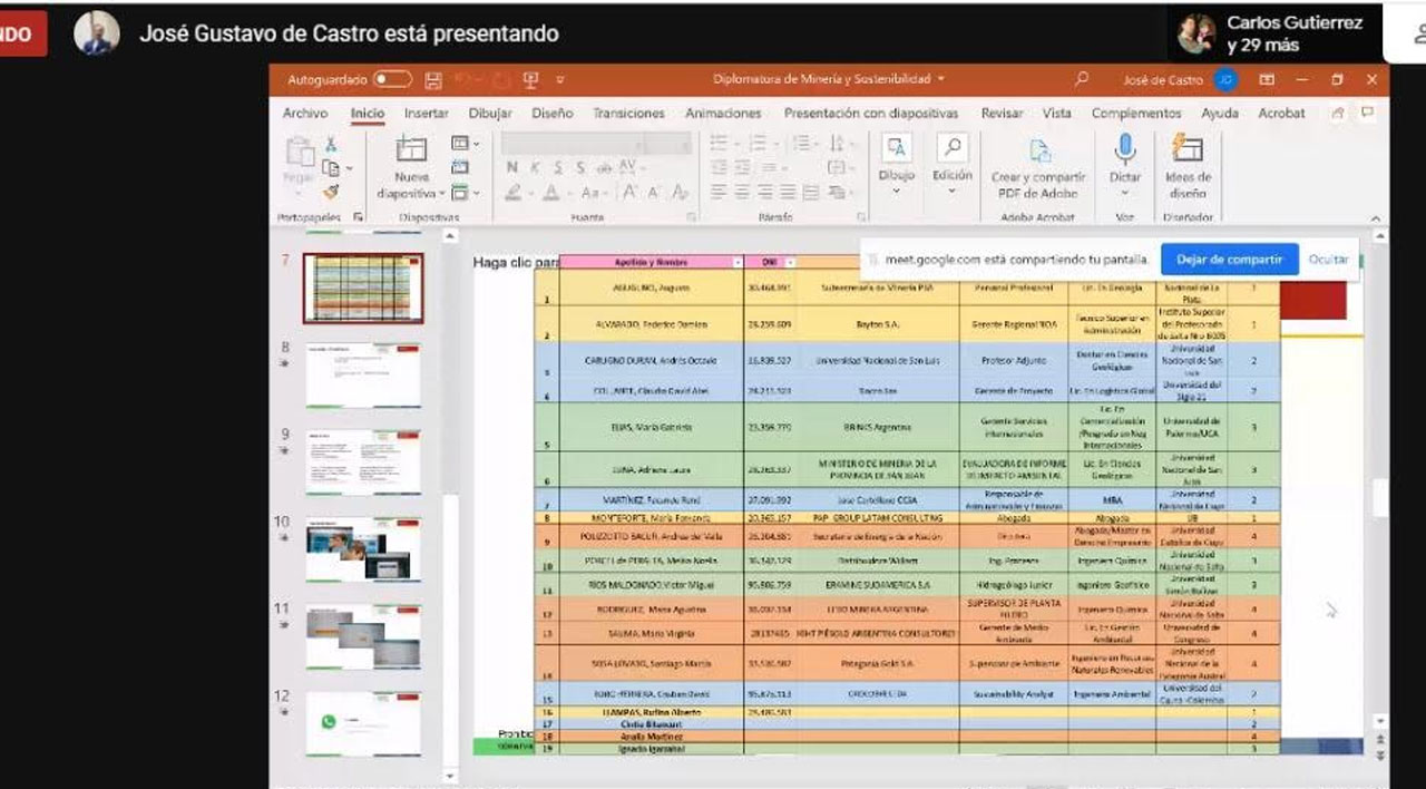 En un formato virtual pudo llevarse a cabo el lanzamiento de la 1er. Cohorte de la Diplomatura en Minería y Sostenibilidad. La misma se dictará en formato virtual y remoto.