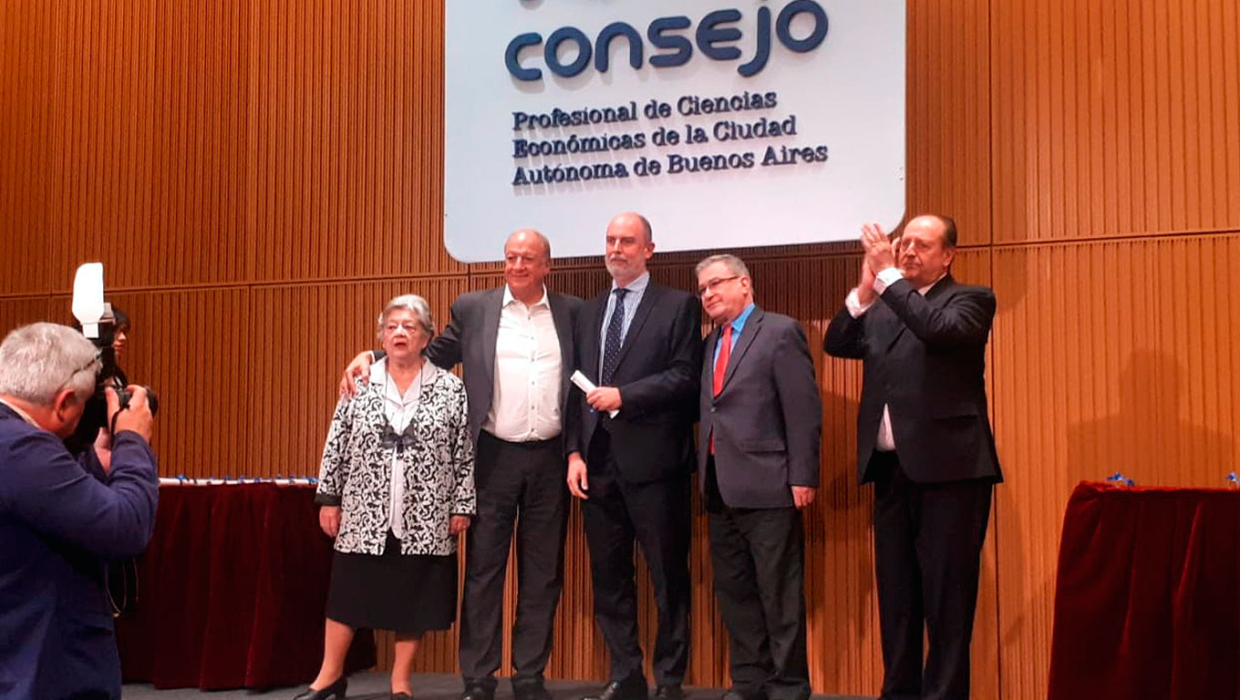 Hicieron entrega del mismo las autoridades del C.P.C.E.C.A.B.A., doctores Humberto Bertazza (Presidente) y Armando Lorenzo (Vicepresidente 1º). Es dable que ambos profesionales son profesores eméritos de la Universidad de Belgrano.