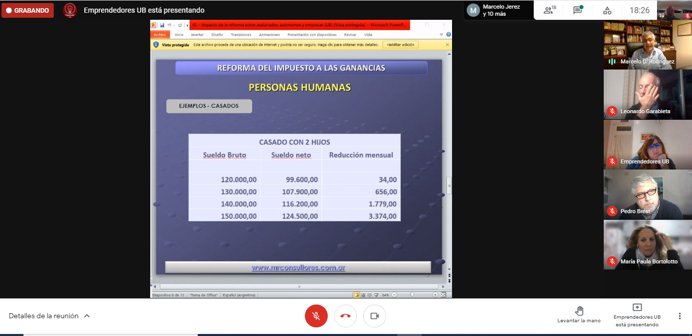 Organizada por el Centro de Emprededores UB y la carrera de contador público se llevó a cabo vía plataforma zoom la charla “IMPUESTOS A LAS GANANCIAS 2021”. Expuso el Dr. Marcelo Rodríguez, con la moderación del Mg. Leonardo Garabieta y la coordinación de la Lic. Juliana De La Torre por el Centro de Emprendedores UB. Acompañó en la presentación el director de la carrera de economía Dr. Andrés Di Pelino.
