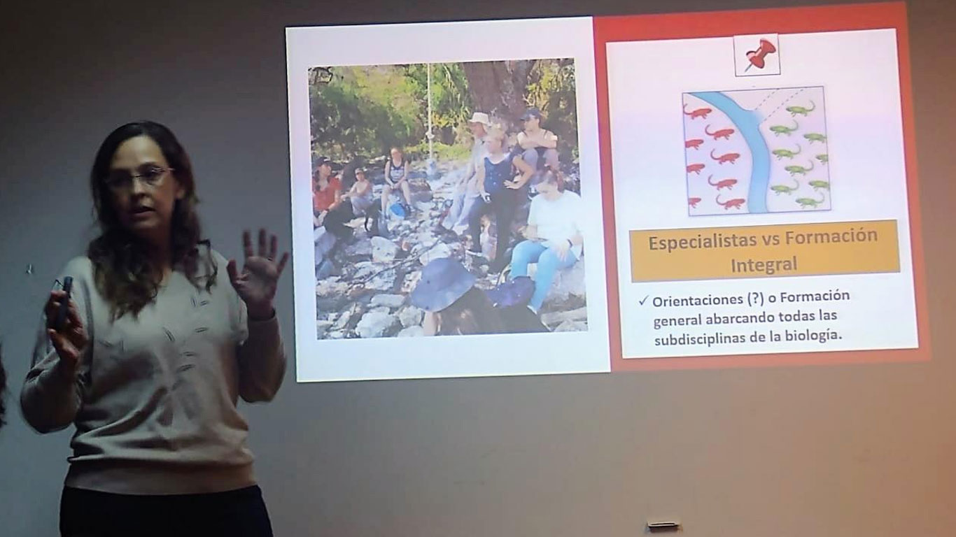 La directora de la Carrera de Ciencias Biológicas, la Dra. Lilian Ferré expuso en la sesión de Educación, dando a conocer nuestra oferta educativa la cual está sumamente actualizada y en concordancia con los lineamientos a futuro previstos por los integrantes del CIN y el CIPEB. En la disertación se abordaron temas relacionados con modalidades didácticas y formación pedagógica necesarias para la tarea de formación de profesionales universitarios en Biologia así como los nuevos lineamientos para el fortalecimiento profesional.